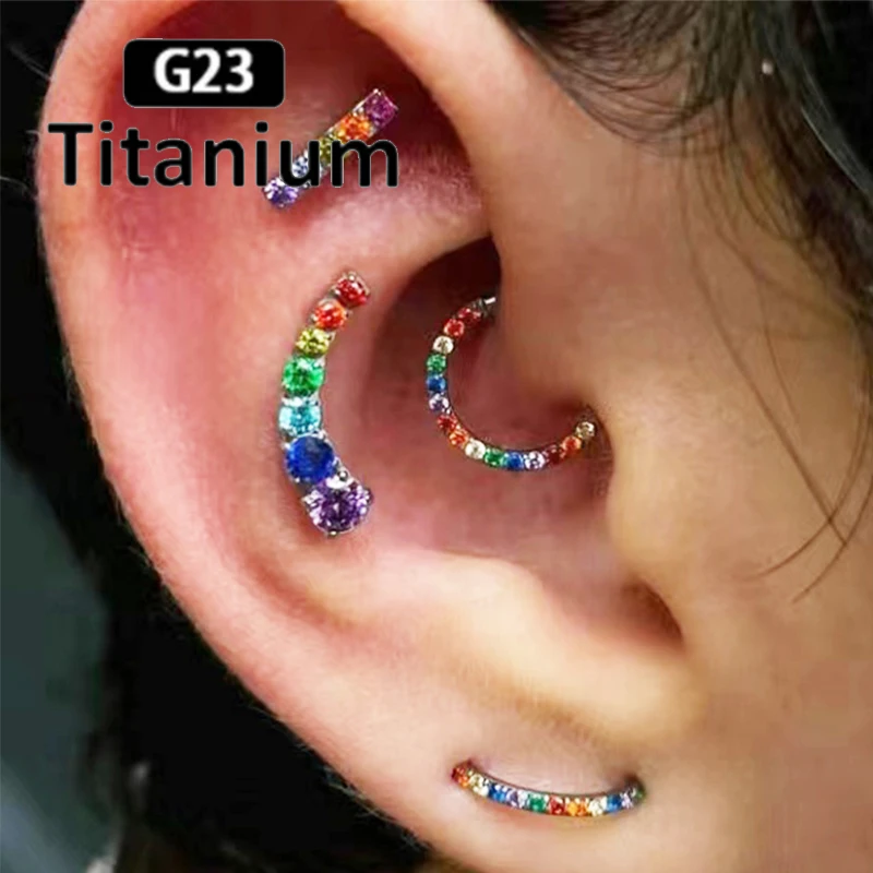 1PC ASTM F136 Titanium Earrings High Quality Zircon Hight Segment Nose Rings Open Small Septum Piercing Helix Lobe Body Piercing 16GTitanium puncture jewelry is an emerging industry. This will become a new economic breakthrough in the jewelry industry, because titanium jewelry is a new jewelry material, combined with its own "biophilic" nature. In the human body, resistant to secretion corrosion, non-toxic, suitable for any sterilization methods, skin contact will not cause harm to any human skin, with the above properties, in recent years, has been gradually selected by many big brands at home and abroad